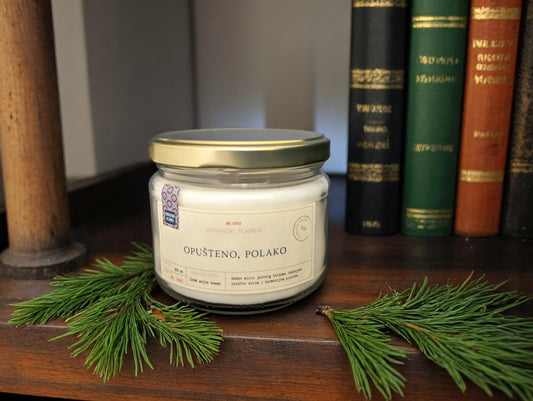OPUŠTENO, POLAKO – SOJINA MIRISNA SVEĆA SA MIRISOM JELOVOG BALZAMA