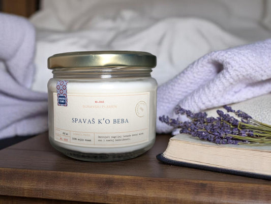 SPAVAŠ K’O BEBA – SOJINA MIRISNA SVEĆA SA MIRISOM LAVANDE